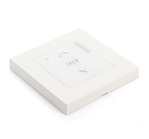 La commande ne mesure que 80mm de haut sur 80mm de large, pour une épaisseur de 10mm, ce qui est très peu et donc discret.